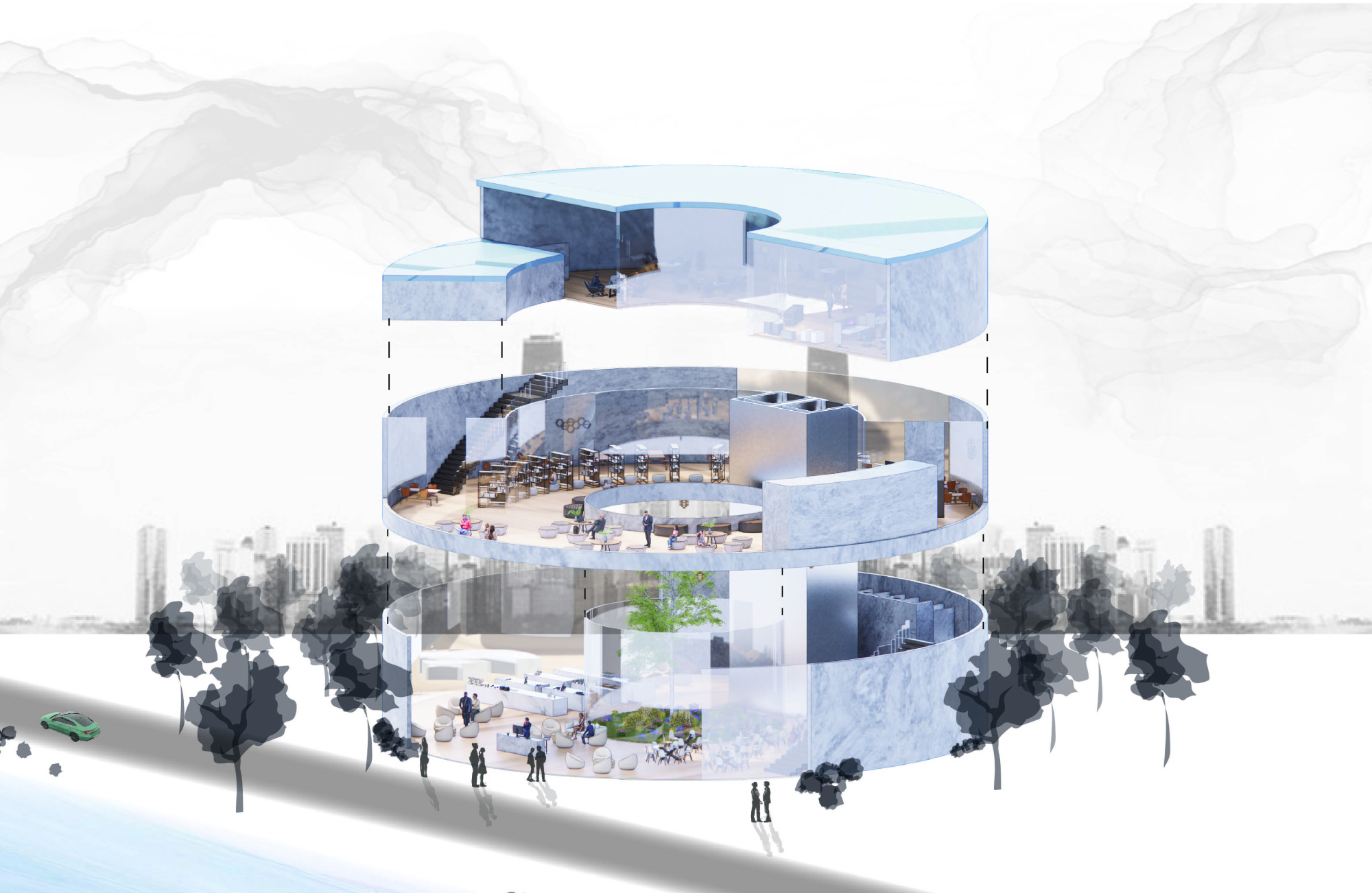 The design features modular, reconfigurable rooms that adapt to the changing needs of residents, allowing flexibility across different age groups and lifestyles. Open balconies wrap around the building, forming green spaces that act as elevated gardens and walking paths, where residents can meet, exercise, or simply enjoy the outdoors. Together, these elements create an environment of balance, health, and connection.