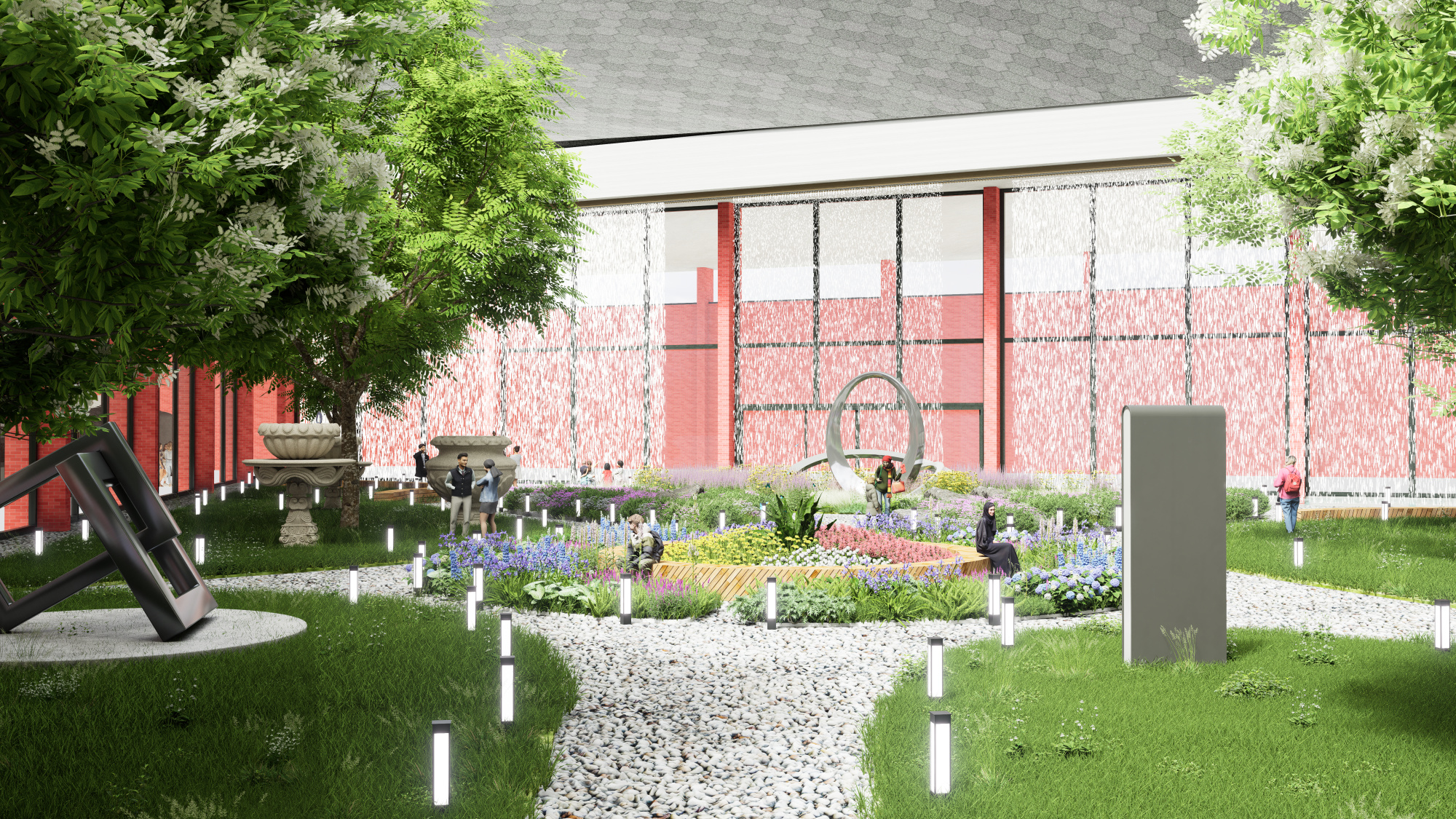 Cantral park shot of the proposed Lush Museum. A heart of Lush Museum has a beautiful garden in the middle of a building with water feature, which was inspired by Yalukit mean "river home".