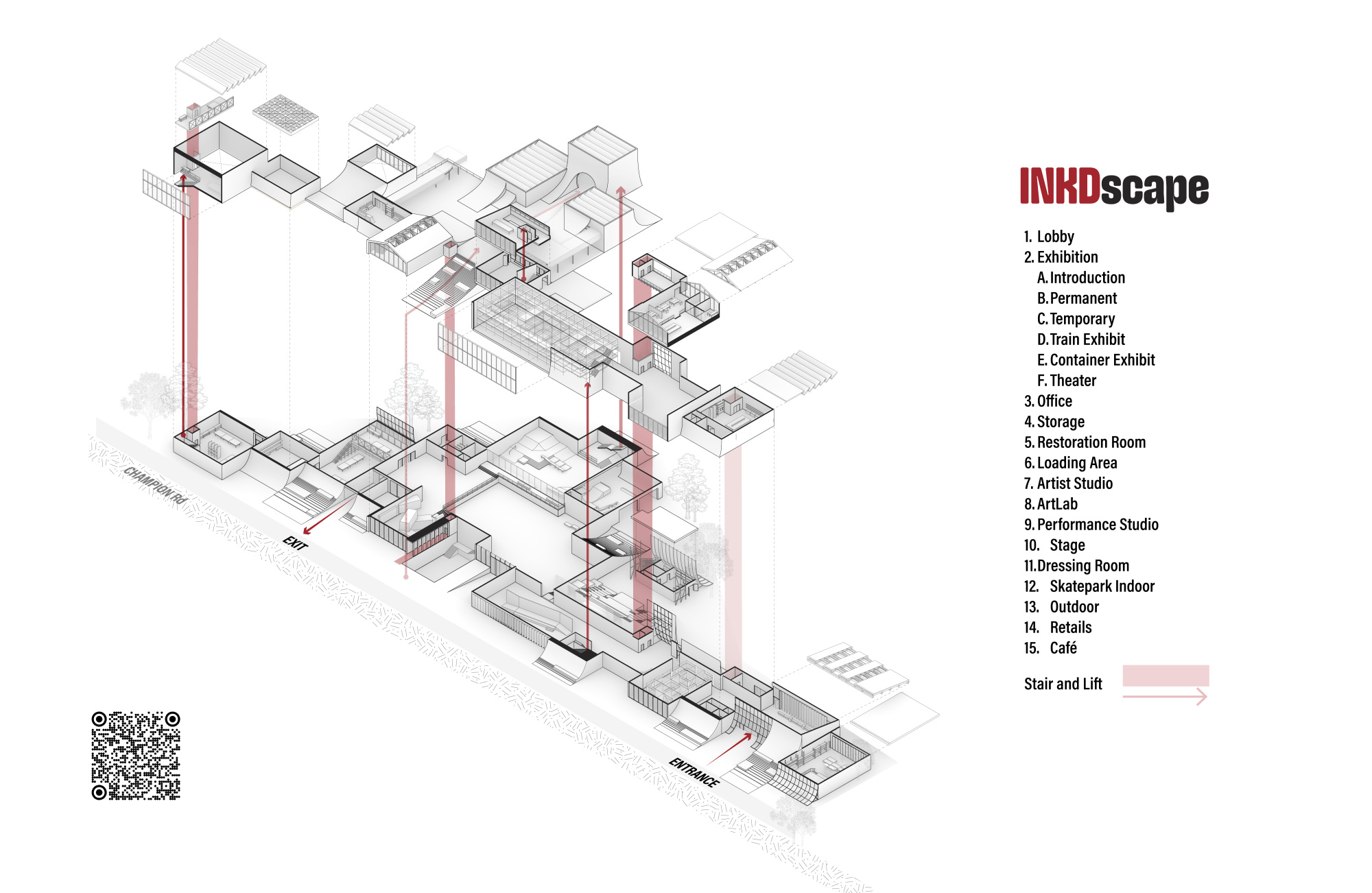 INKD Museum is designed as a living canvas, an expressive space that unfolds the city’s stories through art and movement. Each section reveals a different layer of street culture: from graffiti, music, and skateboarding to its contemporary evolution across walls and railways. The museum connects artists, skaters, and visitors, blending exhibition, performance, and public space into one.