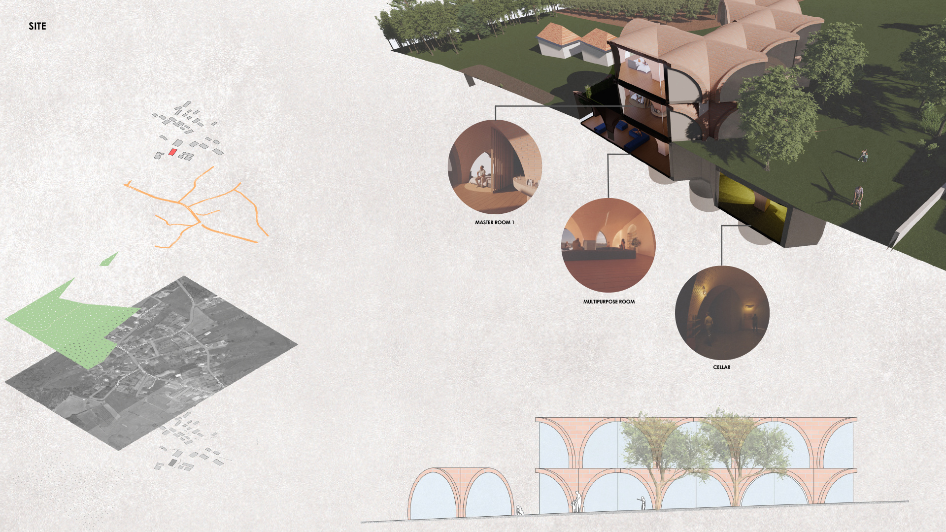 Olive House is a family residence located in Portugal that draws upon the traditional Catalan vault construction system as its core spatial and structural strategy. The design explores how a series of walls intersect and cut through the cisterns, shaping the internal layout and defining key moments of spatial transition throughout the home.