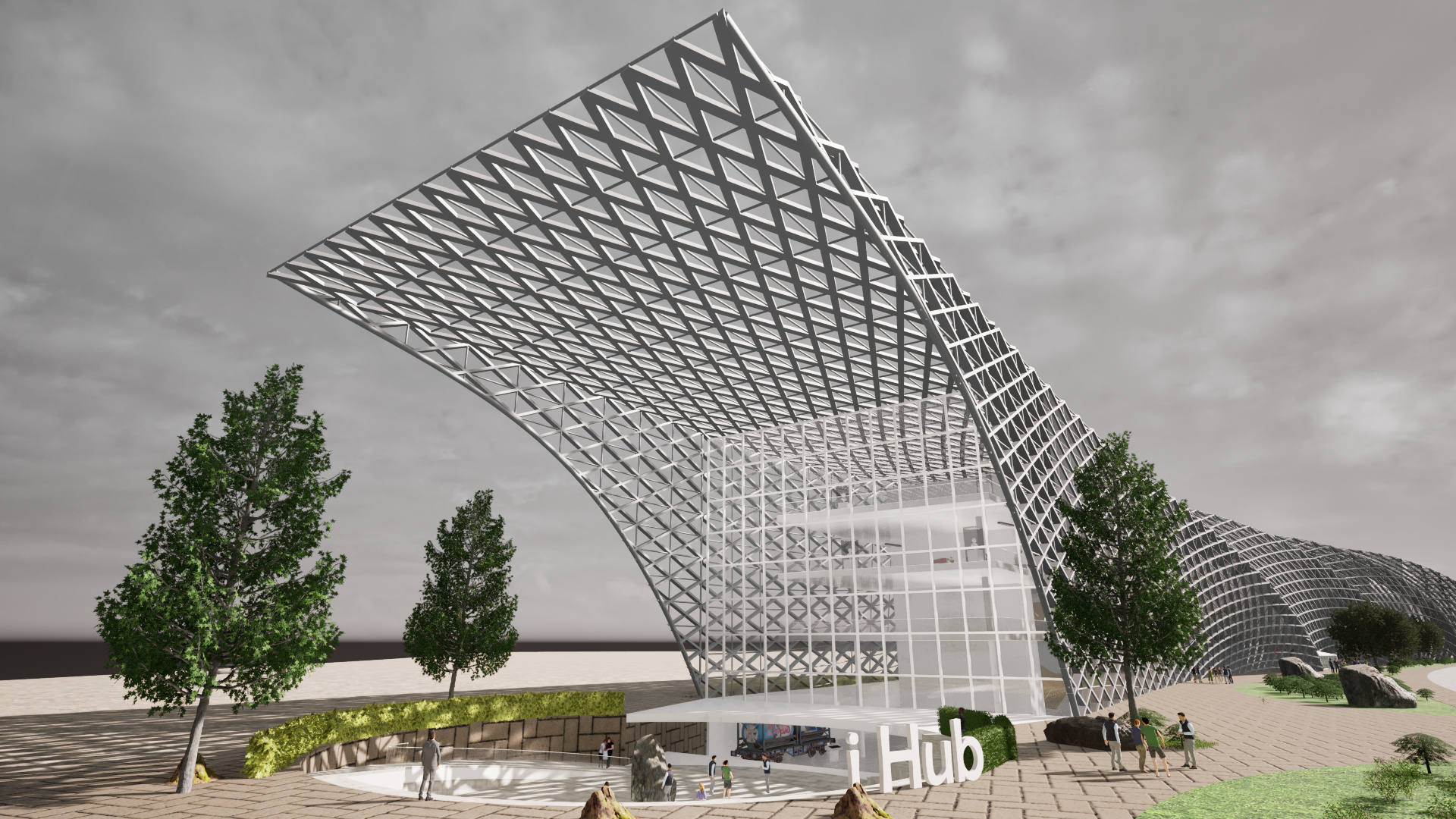 The project is located in Newport and aims to revitalise the area, transforming it from a traditional industrial district into a hub for new technology. The design uses a DNA spiral for form-finding, connecting key functions such as a museum and convention centre, while promoting flexibility and interaction.