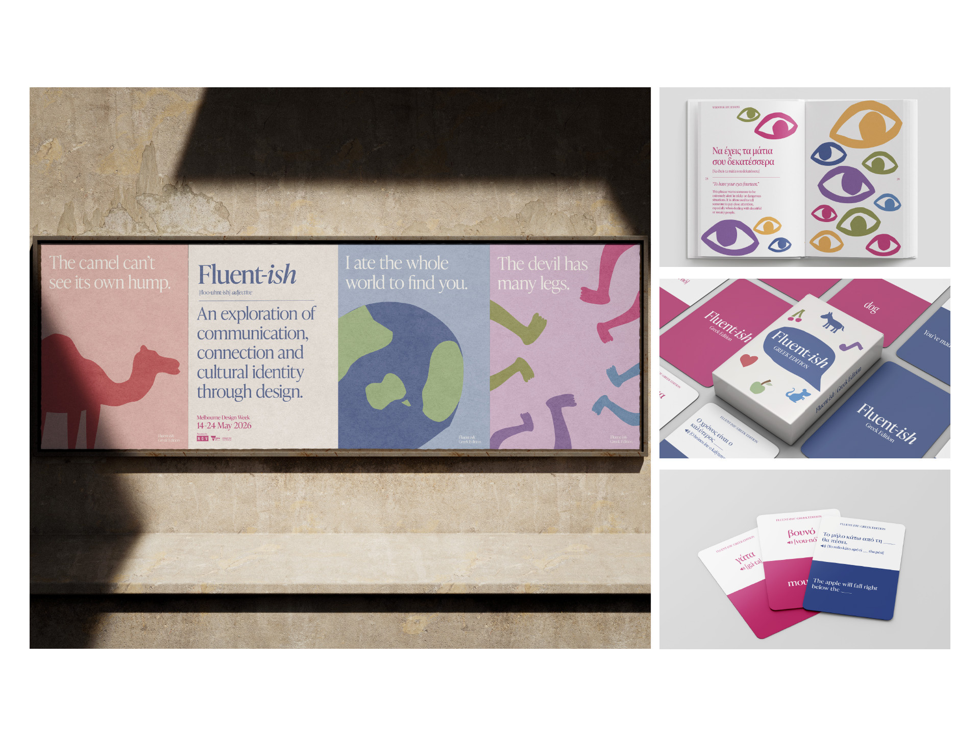 Fluent-ish is a publication and interactive card game that playfully explores Greek culture through a collection of traditional, nonsensical sayings and proverbs, encouraging young Greek Australians to reconnect with their heritage. It transforms these cultural expressions into a contemporary, engaging format that uses humour and interactivity to make heritage feel accessible and relevant.