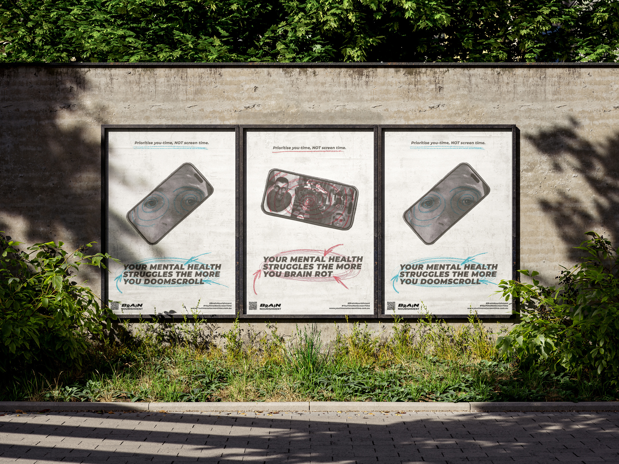 Brain Nourishment, a mental health campaign which promotes decreasing screen time, and highlights the negative impact doomscrolling and brain rotting has on one’s mental wellbeing. The campaign aims to break the habit of doomscrolling and the consumption of brain rot within Gen-Z. All while decreasing screen time, to which Gen-Z has the highest screen time on average compared to other generations.