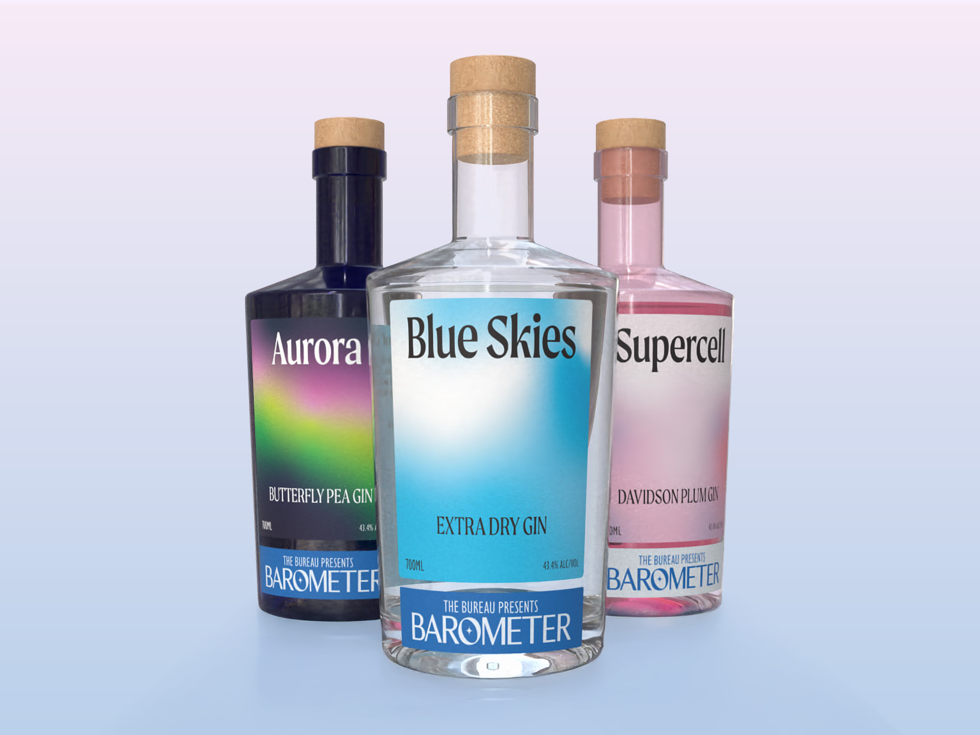 Each bottle represents a weather system or event that has taken over Australian minds and media in the last year. From rare auroras lighting up the sky, to bright blue summer days and the extreme storms we plan our lives around, every label reflects a different national weather moment. “The Weather We Drink To” imagines a playful collab between the Bureau of Meteorology and Dan Murphy’s, using BoM-inspired colour systems and atmospheric gradients to turn real forecasts into a series of drinkable weather moods.