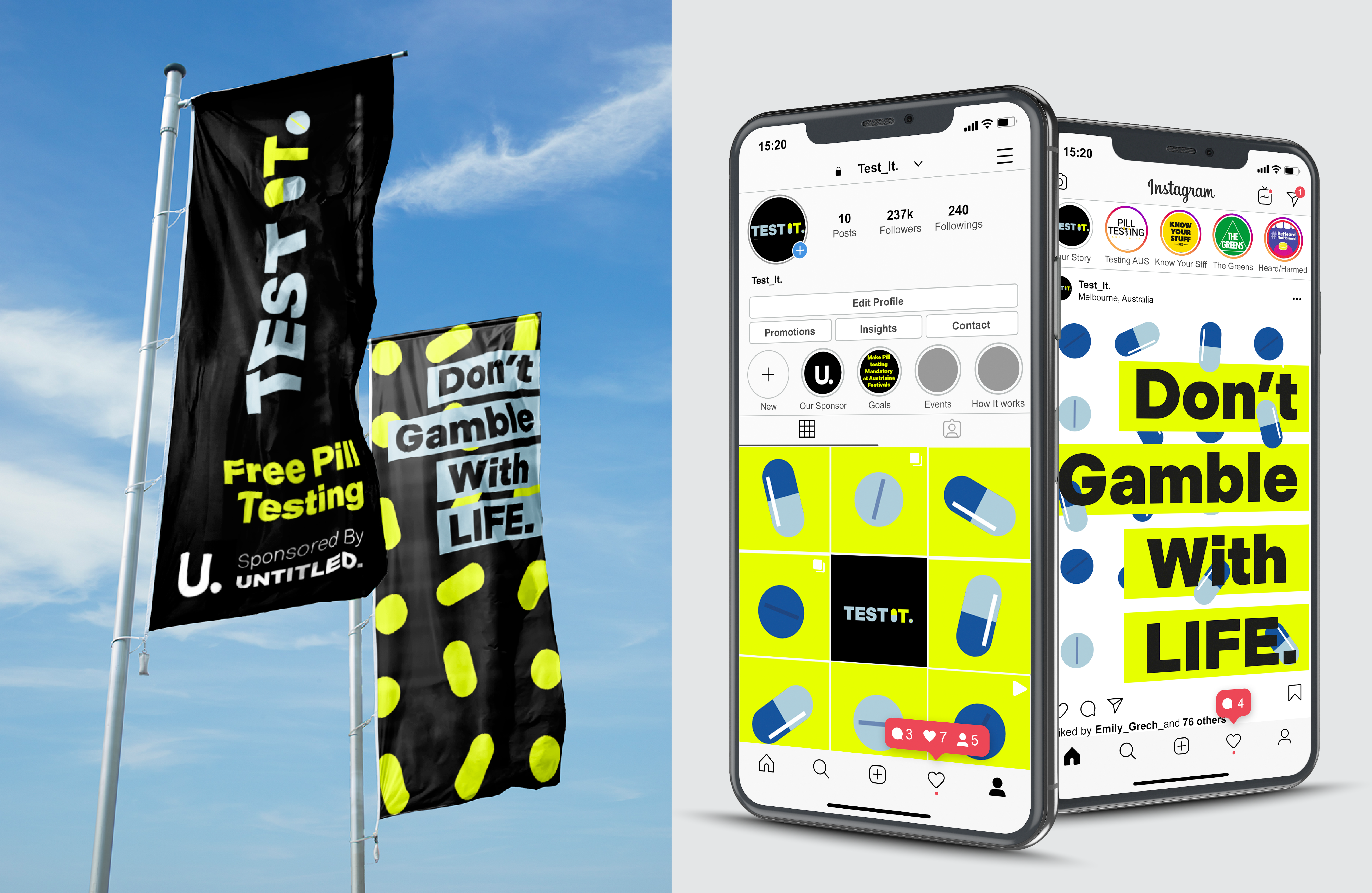 Test It is a social awareness campaign designed to address the brief of creating a solution around a social issue. Designed to cut through stigma and misinformation, the campaign flips the narrative on drug use by focusing on harm reduction, making safety and education visible, relatable, and accessible through bold, attention-grabbing design.