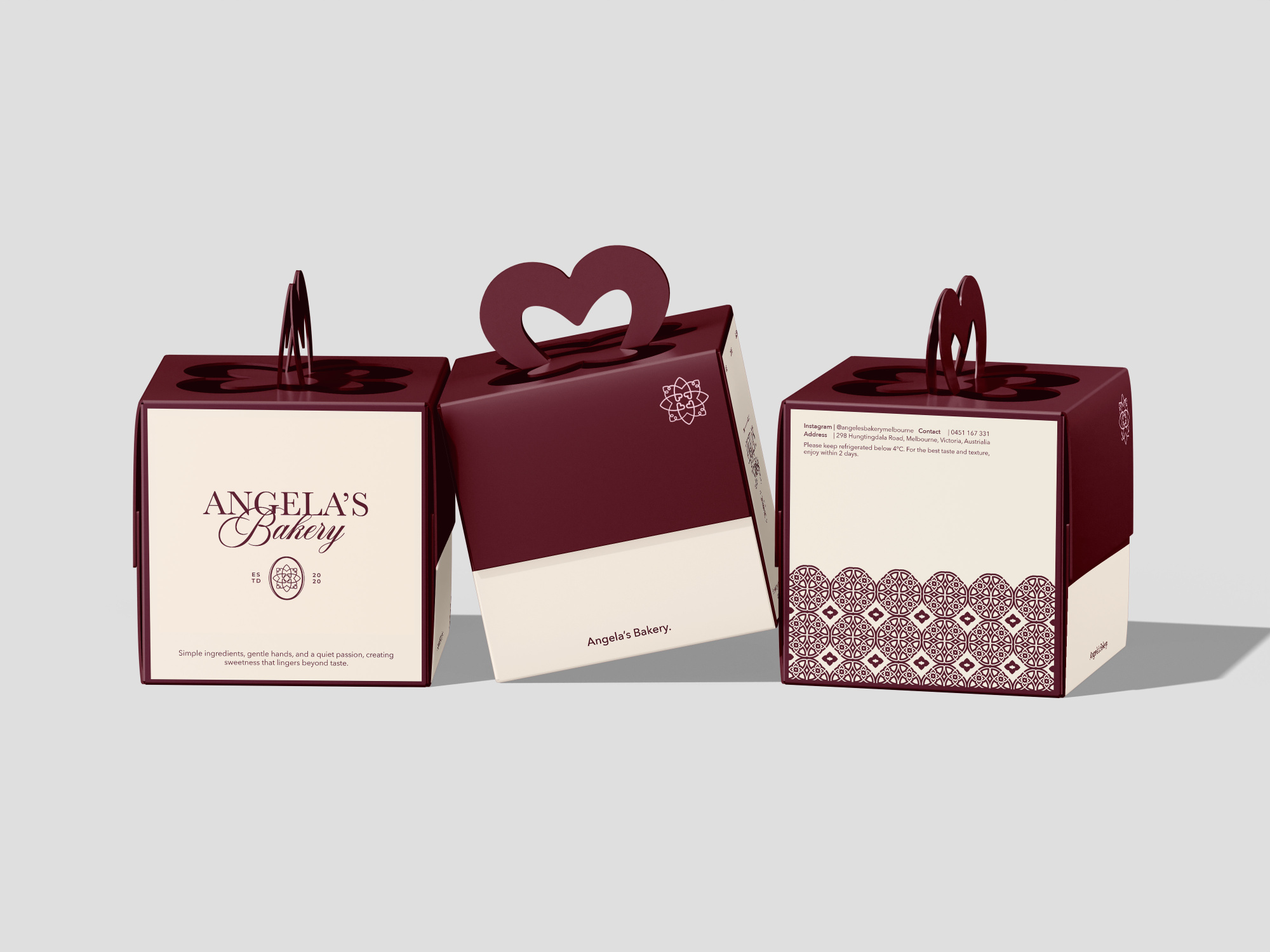 The rebranding of Angela’s Bakery aims to enhance brand recognition and create a more cohesive visual identity that reflects the bakery’s artisanal quality and contemporary appeal. The design approach features a memorable logo inspired by handcrafted typography and soft, elegant forms, paired with a refined color palette and packaging design. Together, these elements strengthen the brand’s presence and communicate warmth, and quality