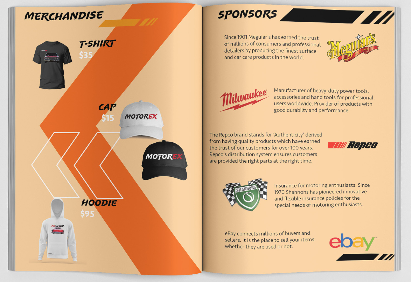 MotorEx is a renowned car festival held in Melbourne, celebrated for showcasing high-performance, custom, and classic vehicles. The task involved creating a festival-themed design project that includes a captivating poster, an engaging multi-page festival guide, and a piece of branded merchandise. Each element in this project was designed with a focus on appealing to the designer’s generation, capturing the interests and expectations of an audience who are enthusiastic about automotive culture.