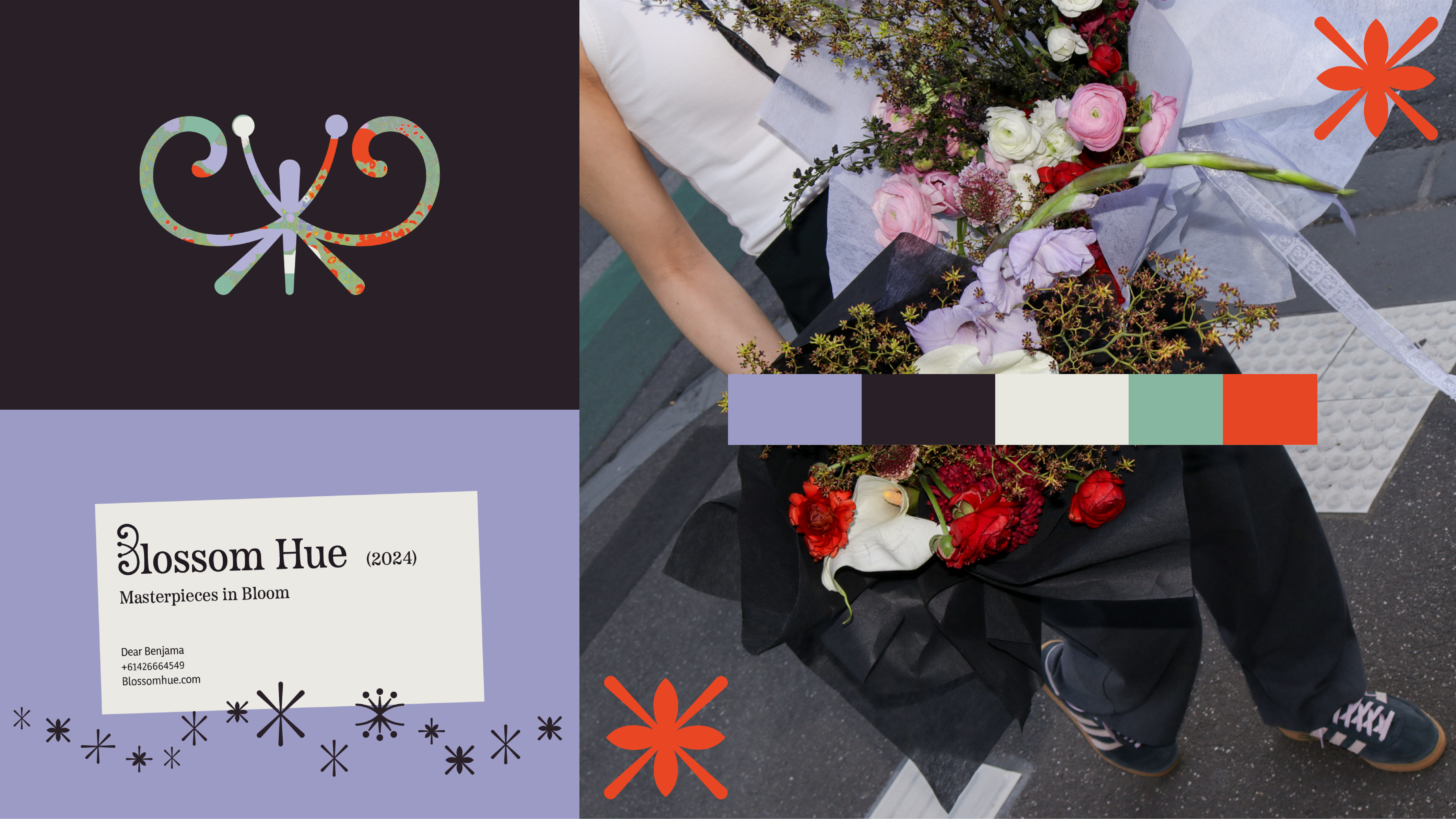 Blossom Hue is a flower studio rooted in the belief that floral arrangements are not merely products, but true works of art. The rebranding reflects this vision by incorporating artistic elements as part of its visual identity, such as the golden spiral, picture frames, gallery labels, and references to historical floral paintings. Unlike traditional museum pieces, Blossom Hue offers floral masterpieces that you can appreciate, hold, and owncaptured perfectly in the tagline, "Masterpieces in Bloom."