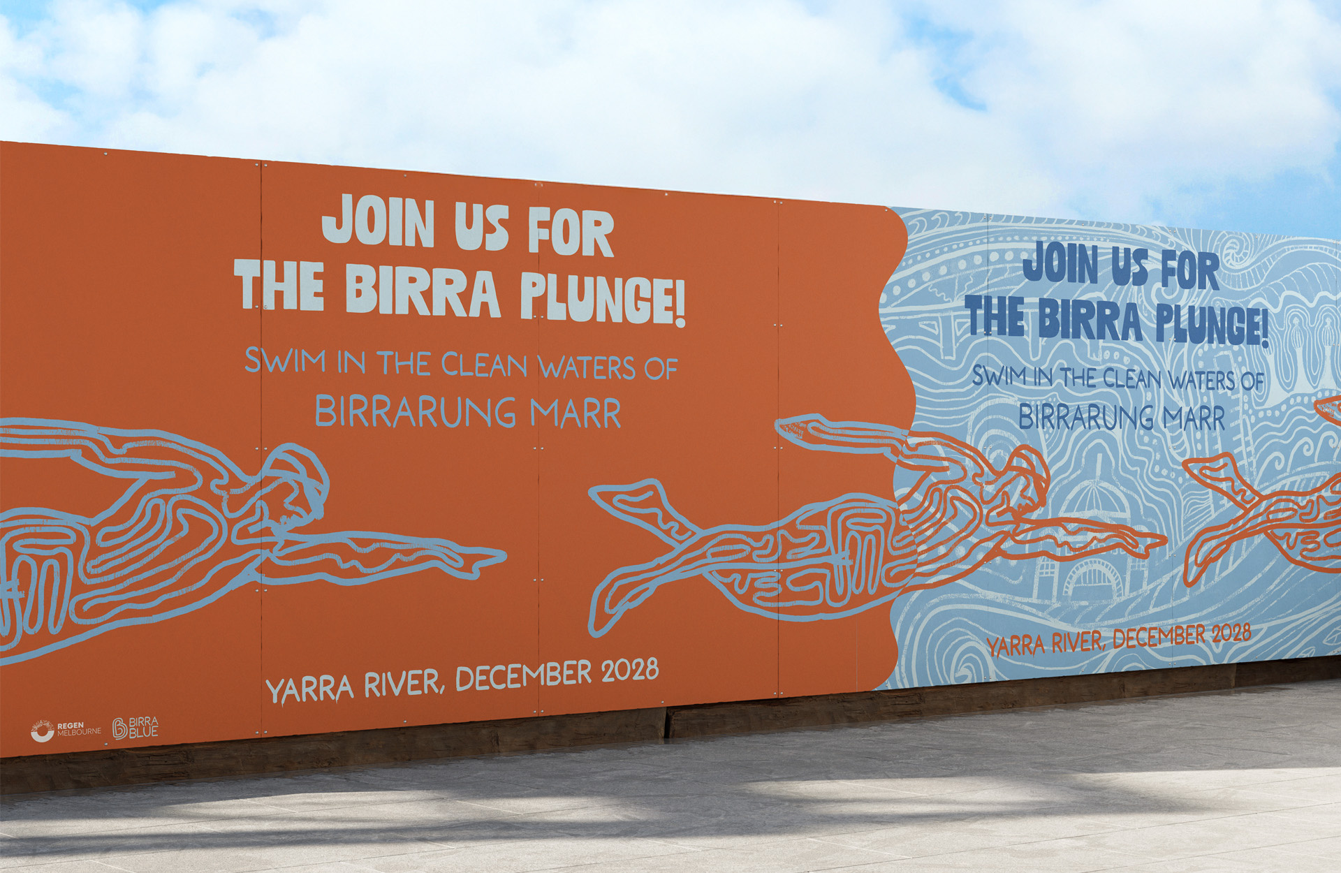 The Birrablue initiative by Regen Melbourne features a comprehensive brand identity and campaign strategy across both printed and digital media, aimed at restoring the Yarra River to its pre-colonial health, making it swimmable again in the heart of the CBD.