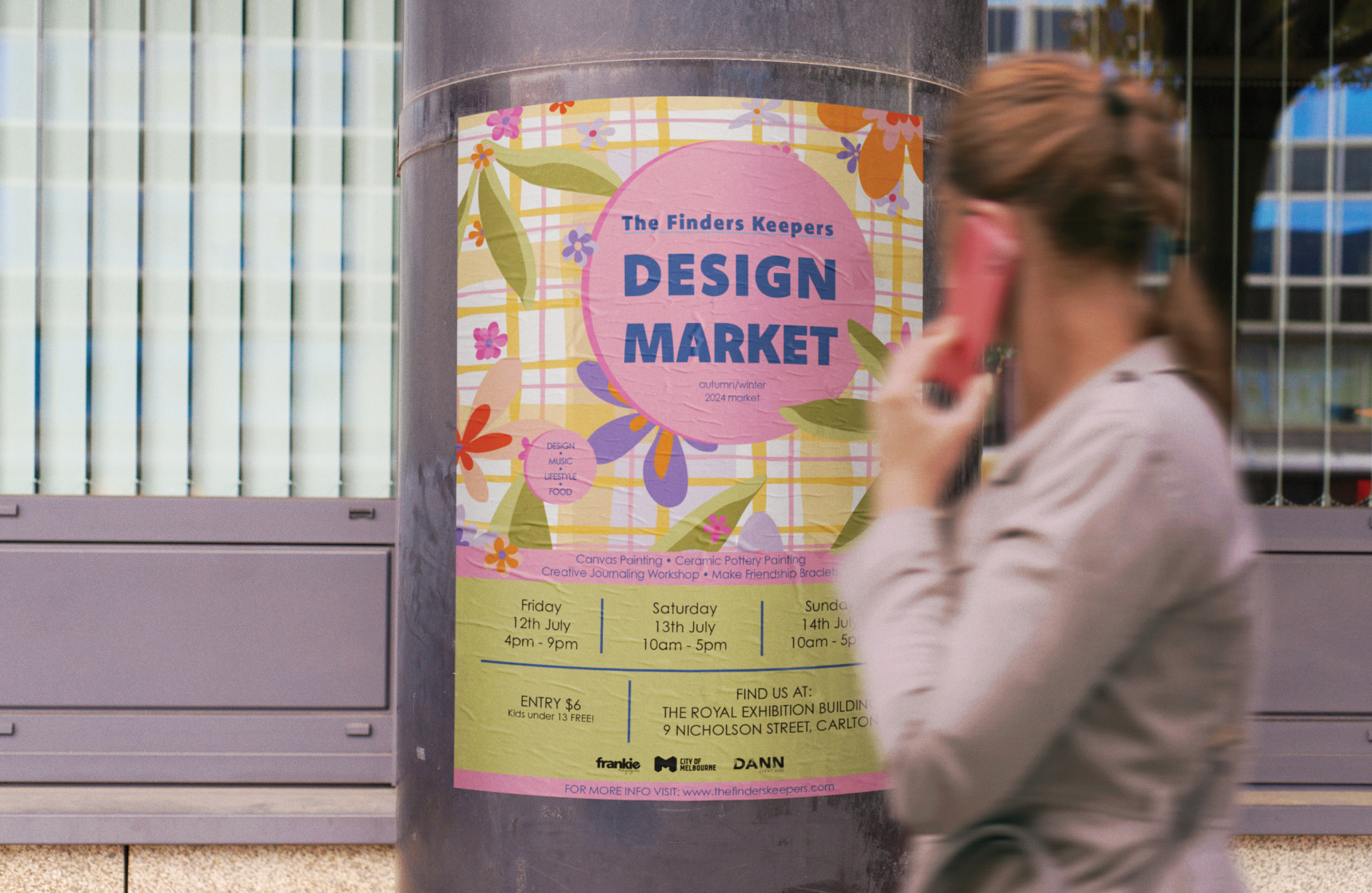 This promotional poster was designed to capture the spirit of the Finders Keepers Market, celebrating its creativity, vibrancy, and welcoming atmosphere. The design highlights key event details while using playful, engaging visuals to attract and inform visitors. Bold typography, bright colours, and illustrative elements were incorporated to reflect the market’s eclectic and approachable character, ensuring the poster is both eye-catching and easy to read. The layout guides the viewer through essential information, balancing aesthetic appeal with clear communication. Overall, the poster aims to engage the audience, convey the unique energy of the market, and encourage participation in a visually compelling way.