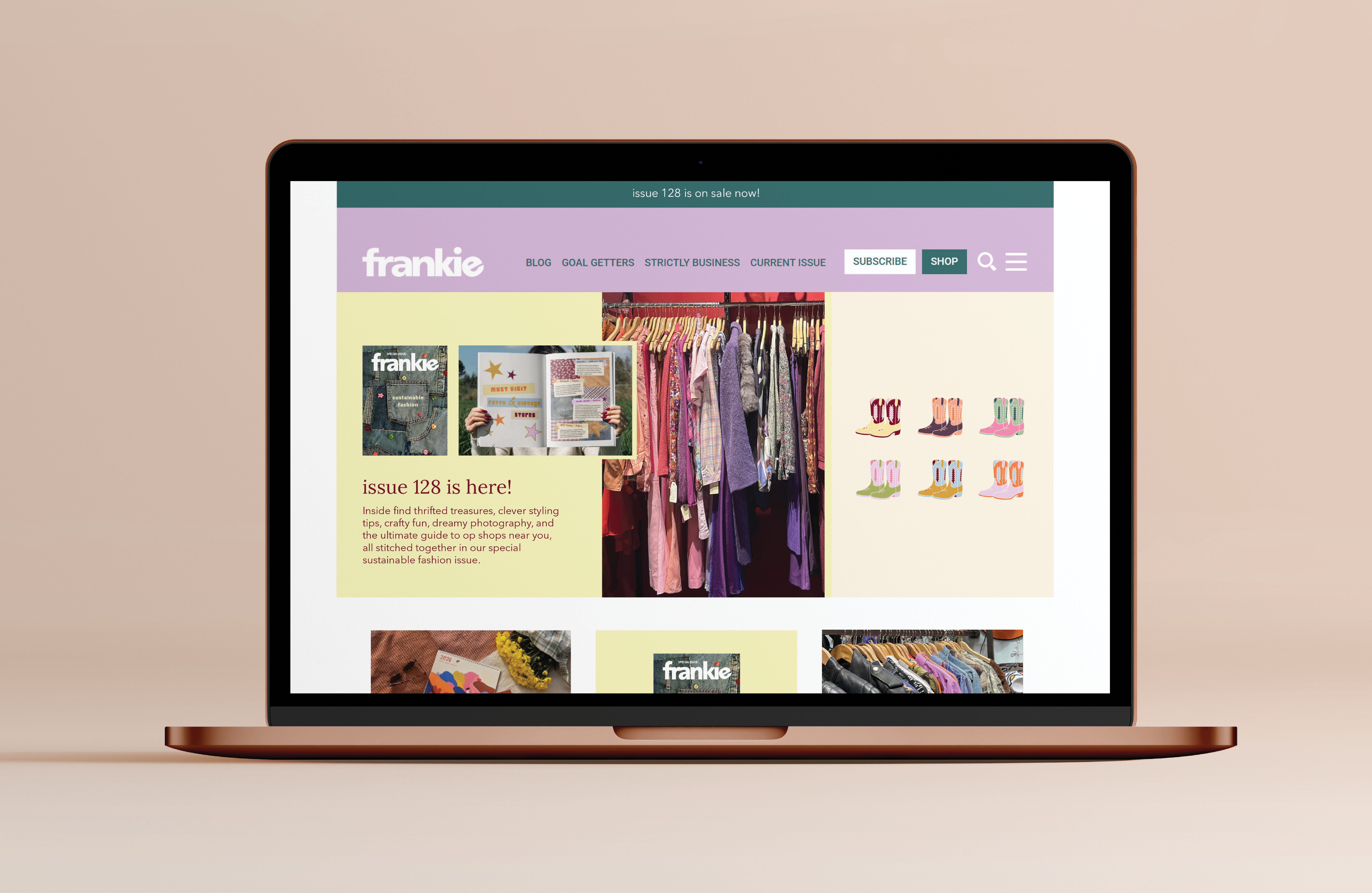 This digital promotion extends the Frankie Magazine: Sustainable Fashion Issue into an online experience that promotes and celebrates the edition in a fresh, engaging way. Designed as a web homepage, it captures Frankie’s signature warmth and creativity while showcasing the issue’s focus on sustainability and upcycling through a lively, contemporary layout.