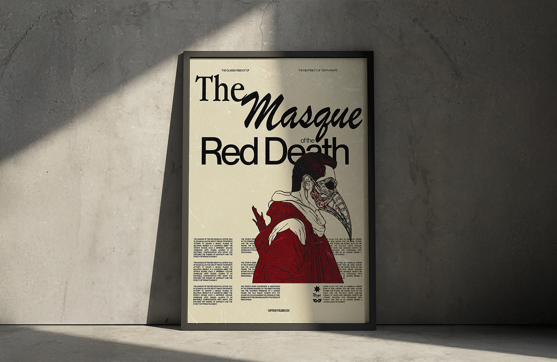 A modern reinterpretation of Edgar Allan Poe’s gothic tale of mortality and excess. The project translates the story’s eerie atmosphere into three touch points, using symbolic colour, texture, and form to mirror the tension between beauty, fear, and inevitable decay.