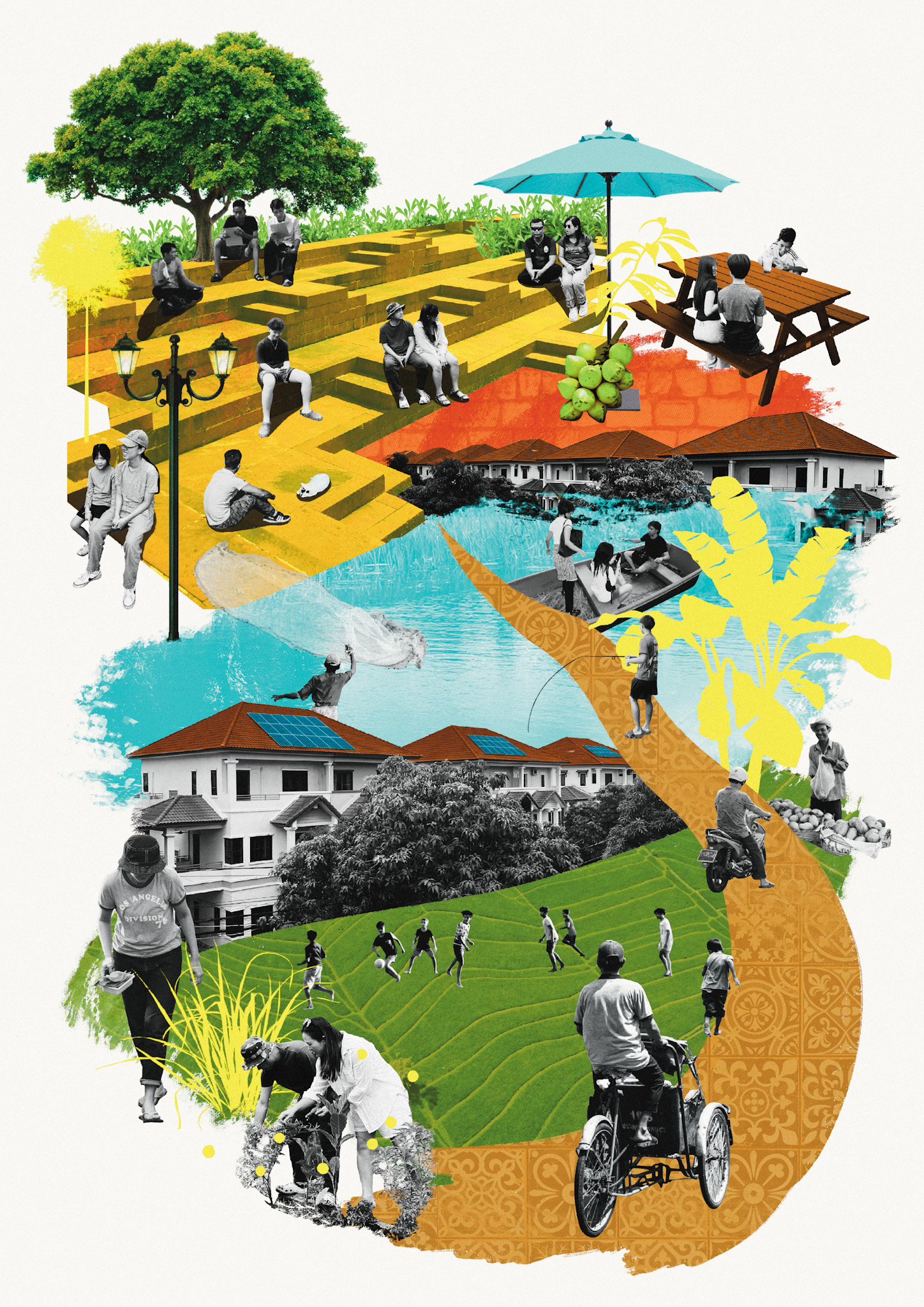Borey Solarpunk is a collage made in response to a call for Southeast Asian inspired Solarpunk art. It was part of a group exhibition in Phnom Penh and Chiang Mai, and reimagines Cambodia’s current housing plans as spaces that work with, rather than against, their natural landscapes.