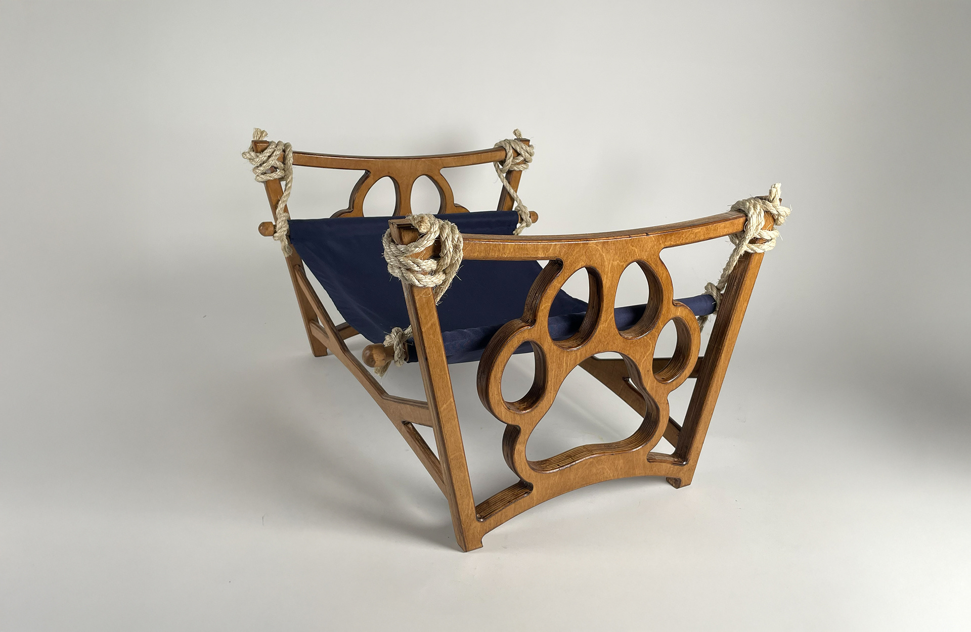 The Daydream is a floating cat bed that sways gently to rock your furry friends to sleep. Made using high quality materials such as pine wood with a rich oil to bring out its grain and sporting a large cat paw on its front and back panels, this cat hammock seamlessly blends into the modern home.