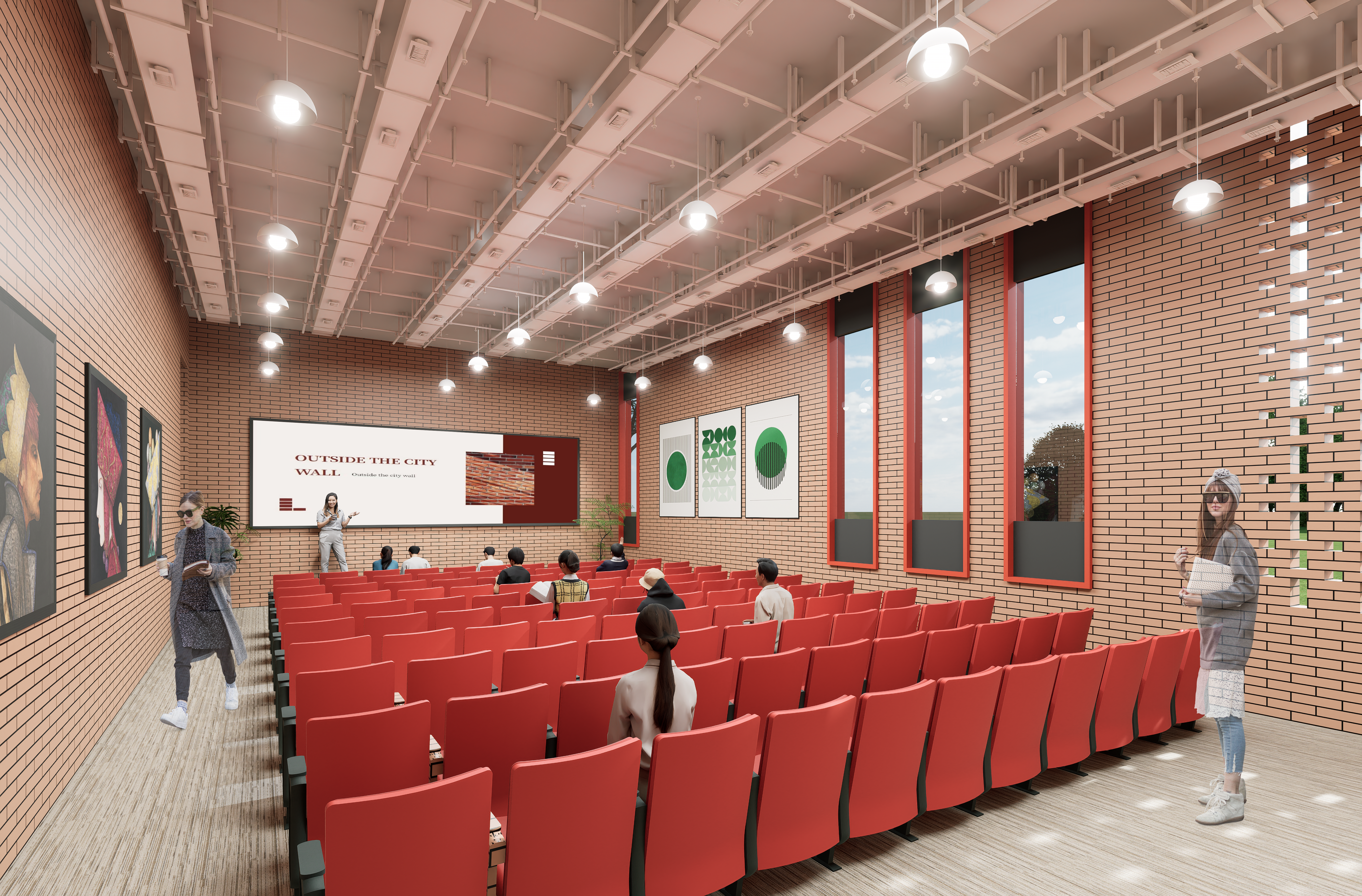 The Forge revitalizes the Box Hill Brickworks into a vibrant community hub celebrating heritage and connection. The auditorium combines red feature furniture, brick walls, and timber flooring beneath an industrial ceiling that bridges the old factory identity with modern design expression.