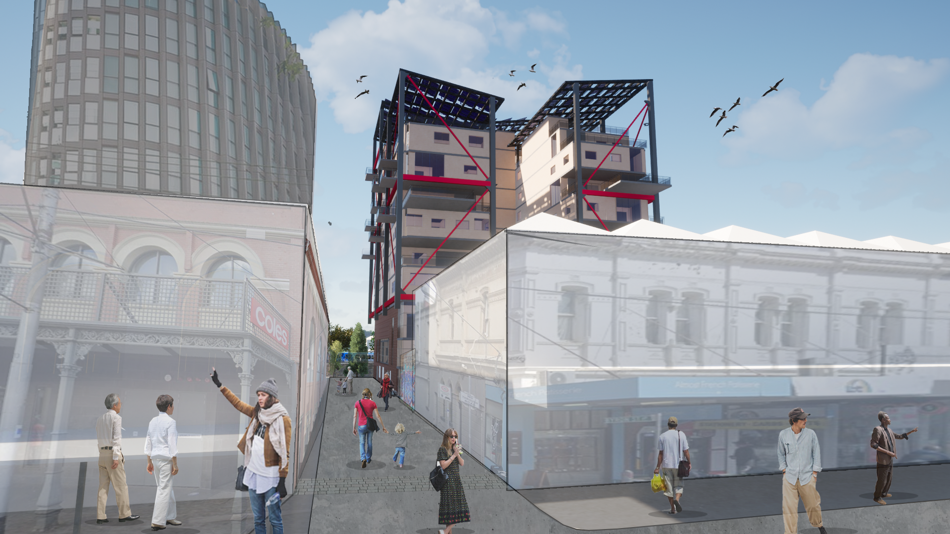 A design response to the ongoing homelessness crisis in Victoria, this project proposes a building in Cremorne that gives people the opportunity to feel safe, supported, and connected. It creates a place to gather, grow, and begin again, offering spaces for community, personal development, and a fresh start.