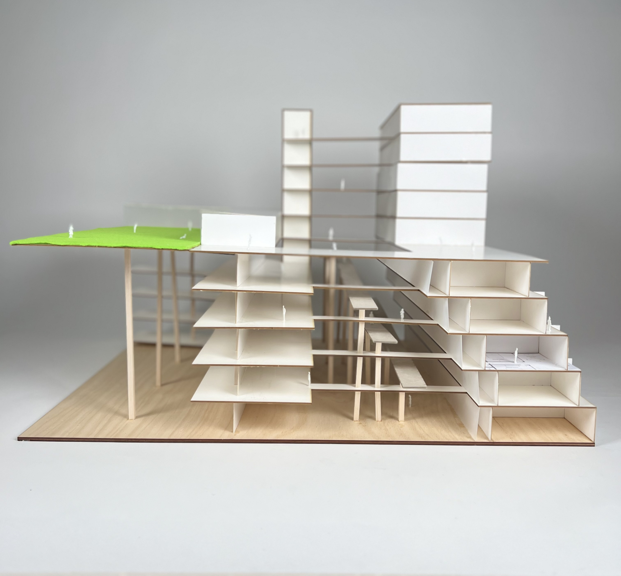 This project reimagines the Public Record Office Victoria by exploring new ways of storing and experiencing data. The sectional model introduces an interactive yet private circulation and level system, transforming how users navigate and engage with the archive. Housing is integrated into the proposal to support new residents moving into North Melbourne. Using data as an expression of networking, the design investigates how information can shape spatial experiences and create dynamic, interconnected environments.